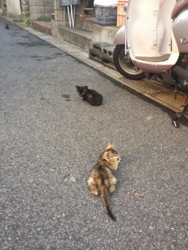 昼はこんな感じ。 深夜は親猫が子猫に歩行練習をしてるっぽい。車も通らなくなるため、道路の真ん中でぐったりしている。どうやらまだまともに歩けてないレベルみたい。本当に生まれたてってかんじがする。 たぶん離乳食食べれるようになった頃に捕獲されて…